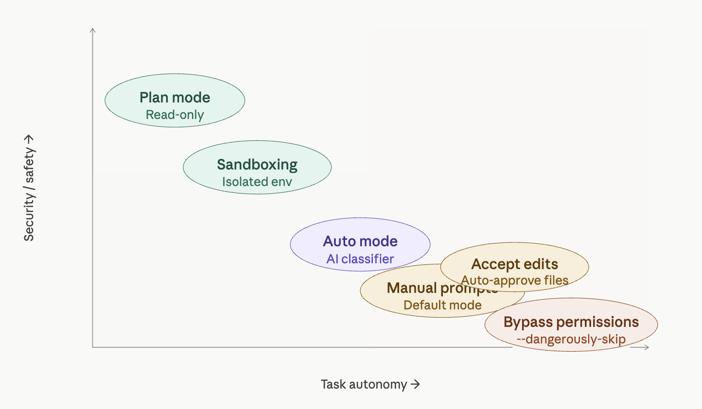 The matrix above shows the tradeoff clearly: security and autonomy pull in opposite directions, and no single mode is right for every context. Here’s a practical framework: